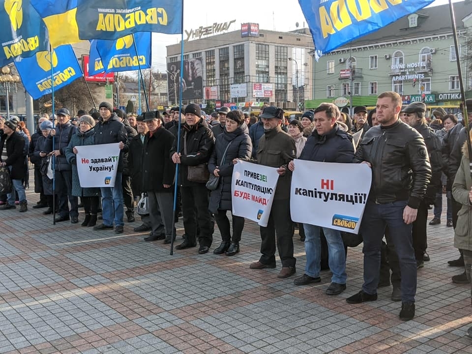 Обласний осередок ВО «Свобода» зібрав народне віче сьогодні у центрі Рівного. Захід відбувається під назвою «Зупини капітуляцію». Нагадаємо, що завтра у Парижі відбудуться переговори у Нормандському форматі.