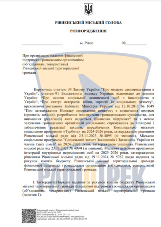 Громадські організації у Рівному можуть отримати фінансову підтримку з бюджету. За розпорядженням міського голови у місті ухвалили порядок проведення конкурсу серед громадських організацій, які можуть претендувати на фінансування.