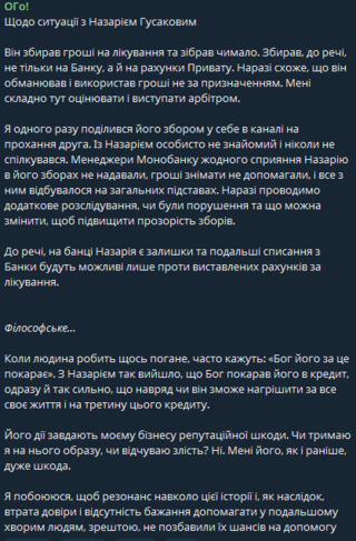 Гроші на лікування чи азарт: що буде з «банками» Назарія Гусакова — відповідь Монобанку