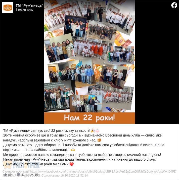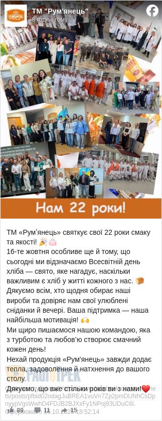 Сьогодні підприємству «Румʼянець», яке випускає всі ці неповторні хліба, батони, круасани, завиванці та все інше виповнюється 22 роки.