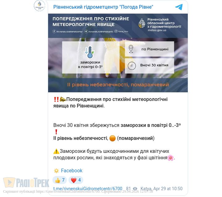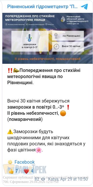 Це ІІ рівень небезпеки, «помаранчевий», – повідомили у Рівненському обласному гідрометцентрі.