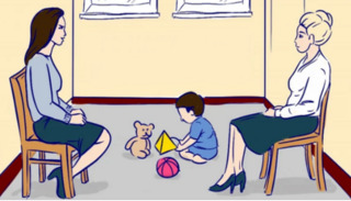 По-друге, дитина грається обличчям до жінки зліва. Чим би діти не займалися, вони завжди це робитимуть так, щоб у полі зору була мама.