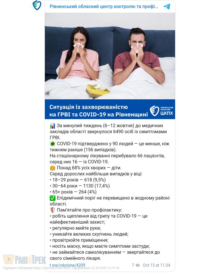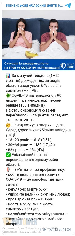 Кількість хворих на ГРВІ та ковід на Рівненщині зростає. Минулого тижня в області зареєстрували майже шість з половиною тисяч.
