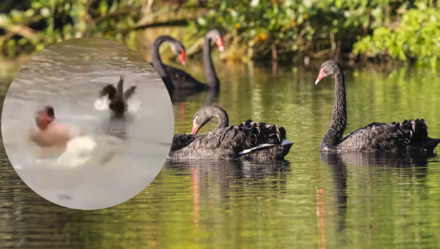 Чорний лебідь набив чоловіка, який плавав у водоймі разом з птахами.