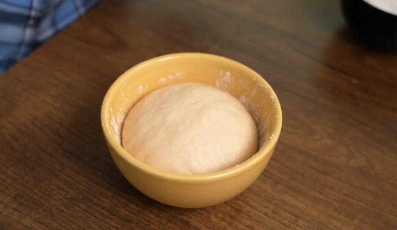 Накрийте миску плівкою, обгорніть рушником і залиште в теплі на 25 хв. Потім сформуйте кулю і дайте відпочити 5 хв.