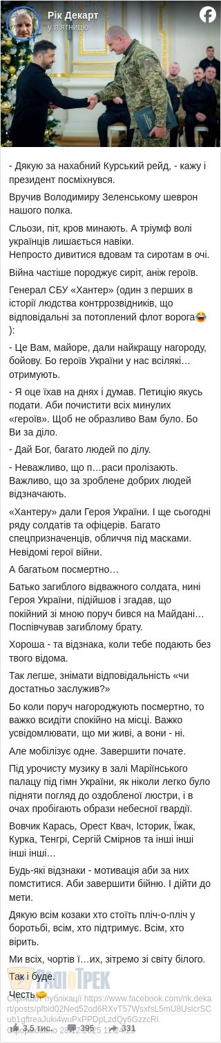 - Неважливо, що п…раси пролізають. Важливо, що за зроблене добрих людей відзначають.