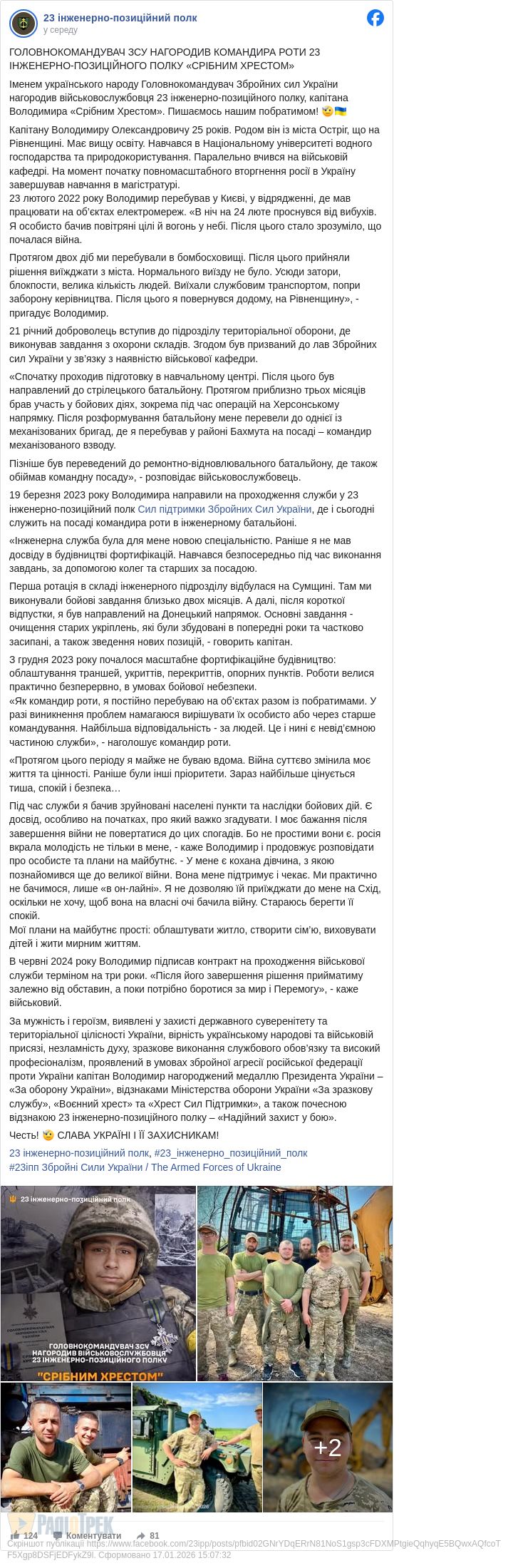 «Іменем українського народу»: Сирський нагородив капітана з Рівненщини «Срібним хрестом» (ФОТО)