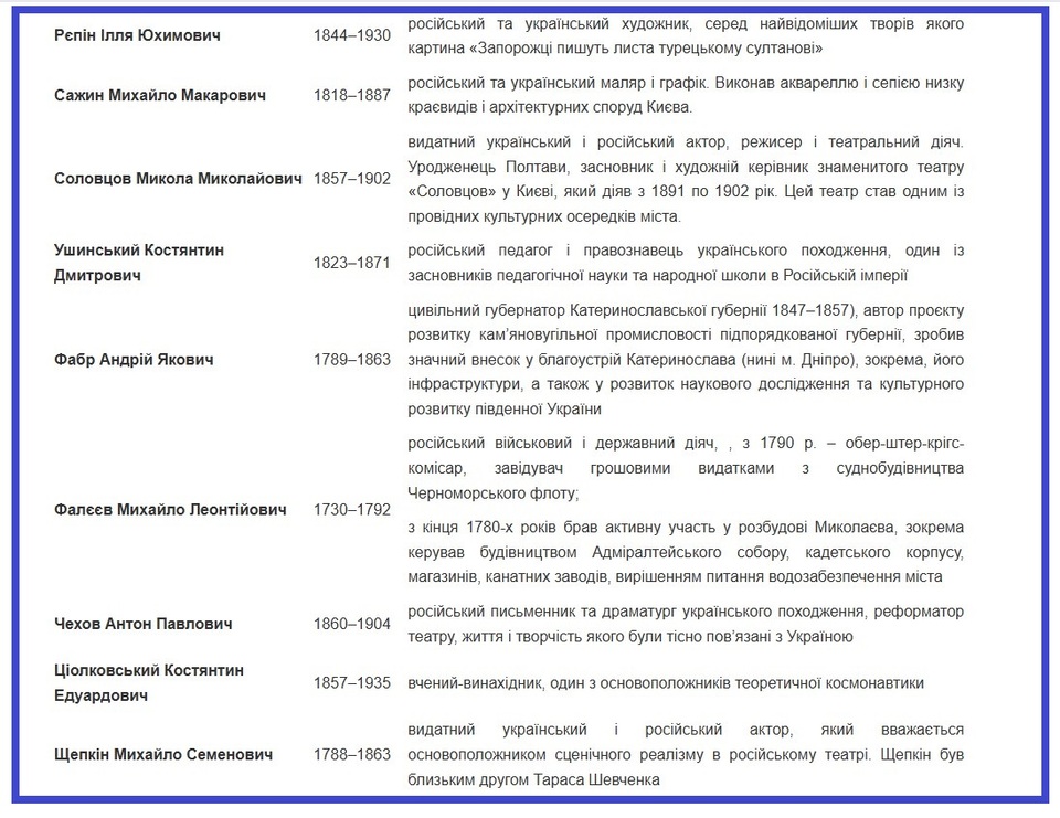 У наведеному документі загалом 50 імен та прізвищ – діячів науки та культури , які колись прямо були пов’язані з Україною.