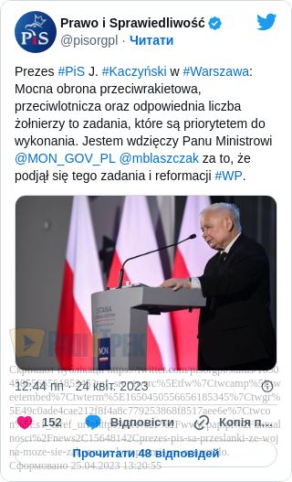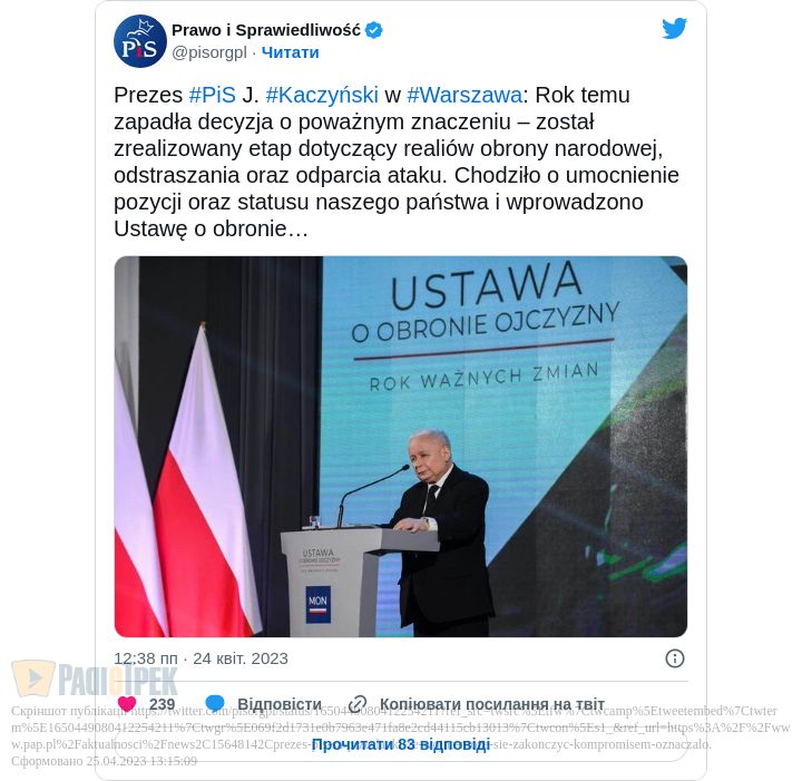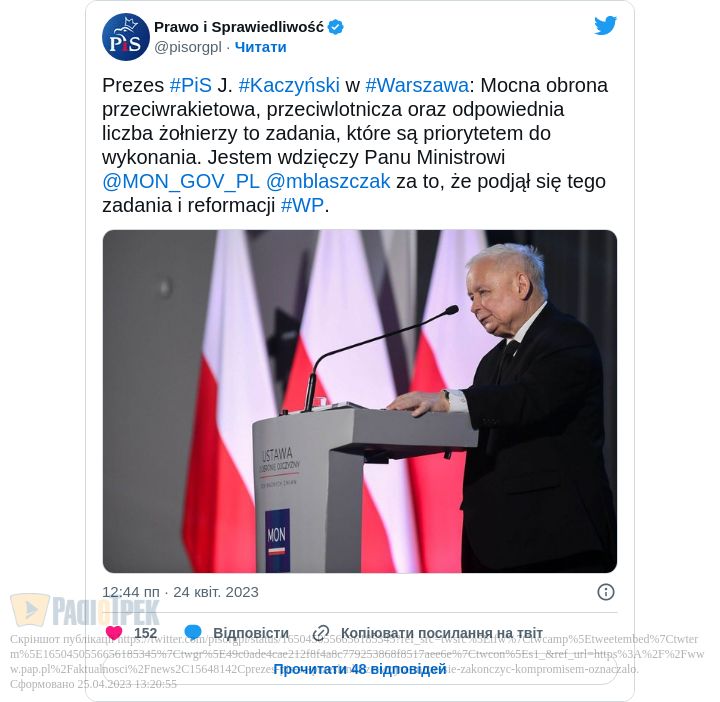 Ярослав Качинський – голова керівної партії «Право і справедливість» (ПіС) заявив, що бачить певні тривожні ознаки.