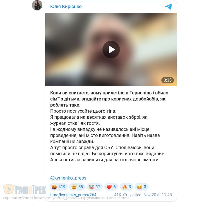 Відео звісно він видалив. Але ключові шматки я встигла зафіксувати.