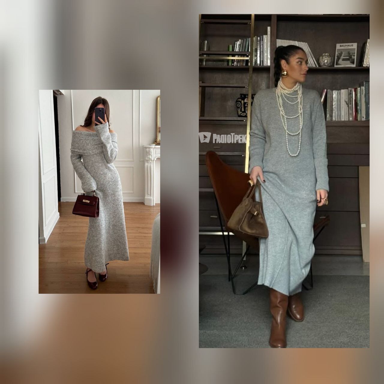Сірий і коричневий — це ідеальне поєднання для створення розкішного образу. Приталена сіра сукня у поєднанні з об'ємною коричневою курткою створюють елегантний, стильний і ефектний вигляд, який не залишить вас непоміченою.