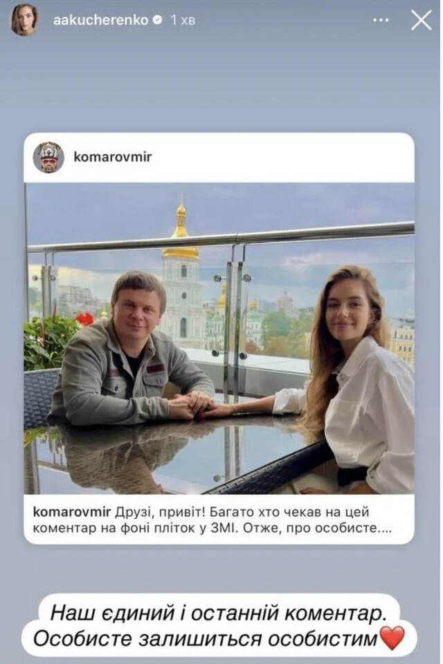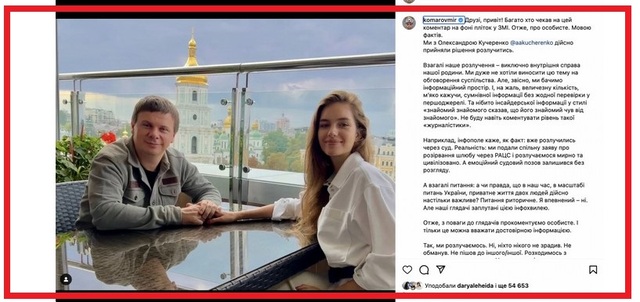 Взагалі до четверга 13 березня ані Комаров, ані Кучеренко тему свого розлучення ніяк не коментували, але це не завадило медіа і ютуберам видавати чутки за факти.