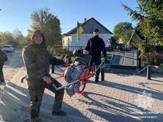Павло, якого взяла з собою команда патрульних Рівненщини, скористався так званим мандрівним візком.