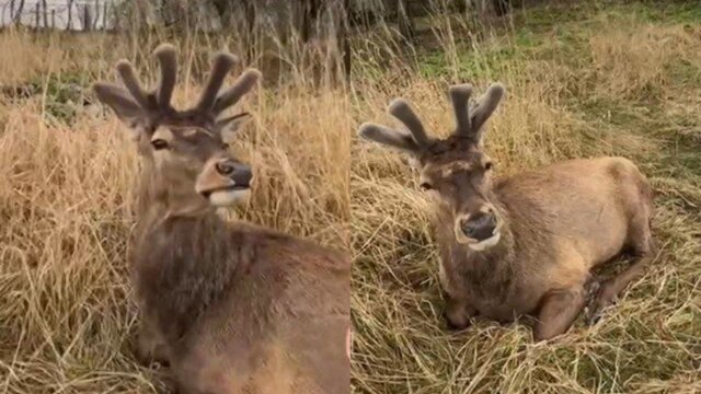 Олень Борис із Зарічного продовжує тішити новими ріжками. Днями у соцмережах з'явилося відео, де тварина лежить серед вулиці, а місцева мешканка пригощає його смаколиками. Особливу увагу привернули його нові роги, які нагадують корону.