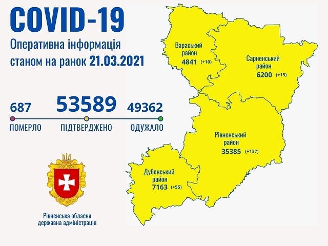 Таким чином в Рівненській області наразі маємо 53 589 випадків захворювання на коронавірусну хворобу.
