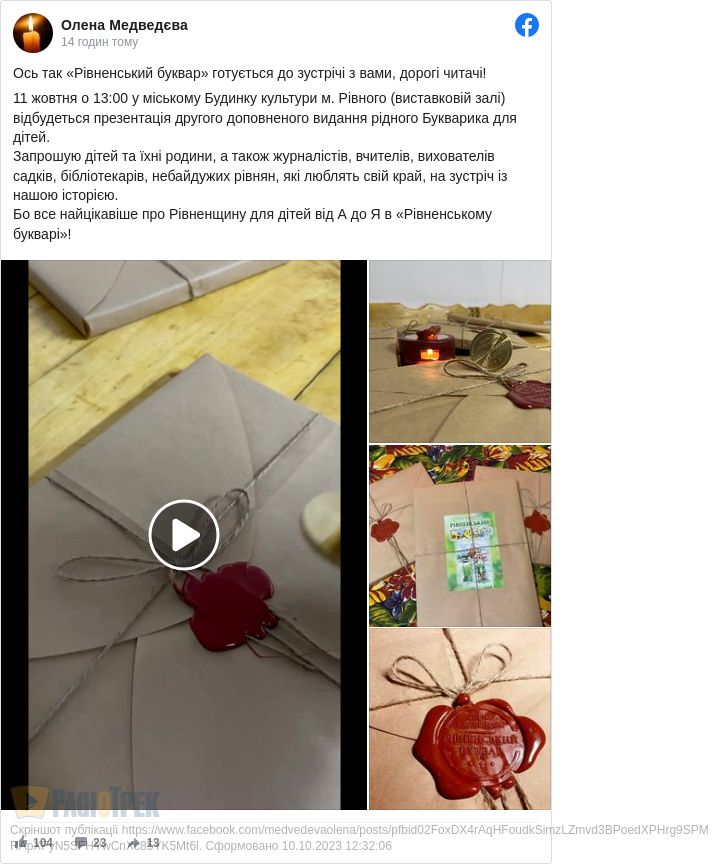 Приходьте, 11 жовтня о 13:00 у міському Будинку культури м. Рівного (виставковій залі).