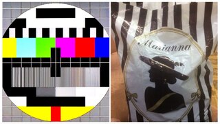 До речі, смугастий фон теж був обраний не випадково – це копіювання упакування парфумів Marina de Bourbon, які теж у той період були шалено популярними.