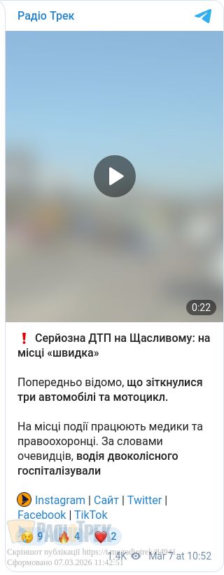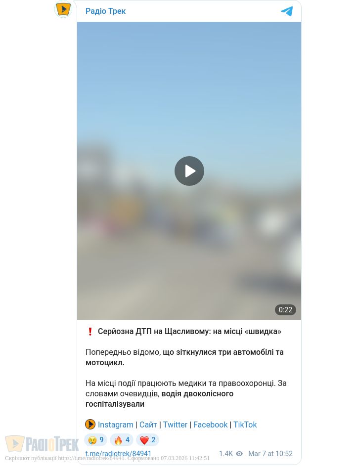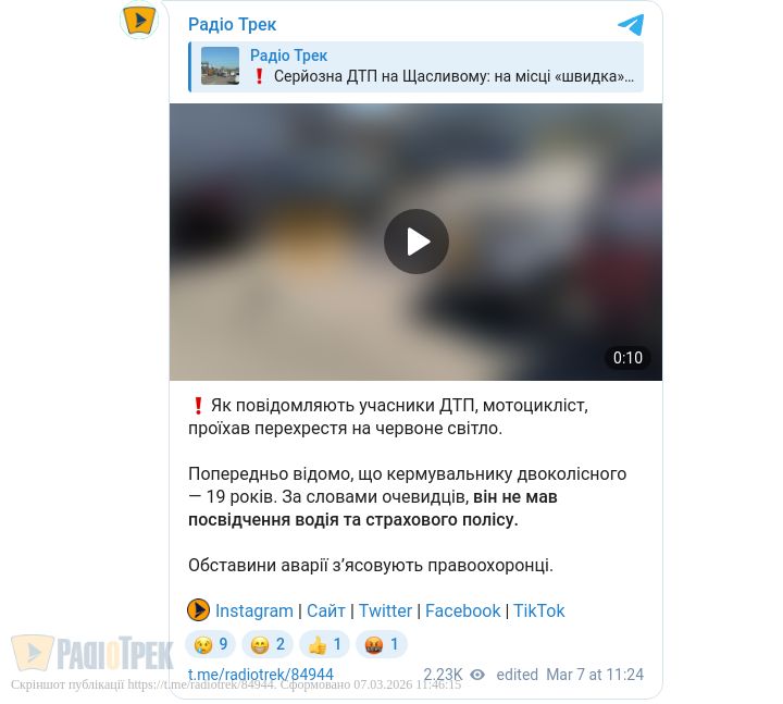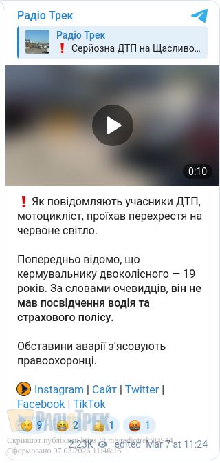 За словами учасників ДТП, мотоцикліст, проїхав перехрестя на червоне світло.