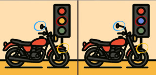 Пропонуємо вам новий виклик. Уважно придивіться до двох зображень мотоцикла, що зупинився на червоне світло.