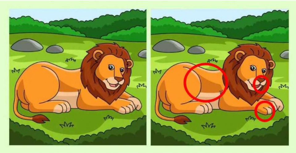 У цьому завданні вам всього за 19 секунд потрібно знайти три невеликі, але майстерно приховані відмінності між зображеннями левів.