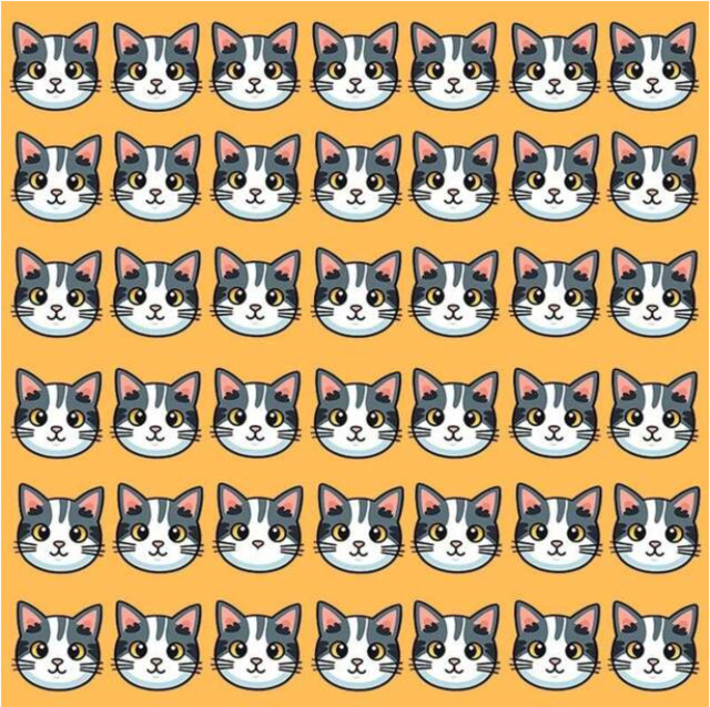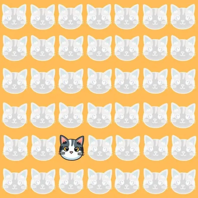 Втім, насправді серед біло-сірих котів є один, який відрізняється від решти. Спробуйте знайти його.