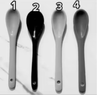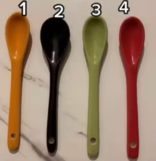 На зображенні вище є чотири різні ложки, поставлені одна біля одної. Одна з них – червоного кольору.