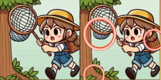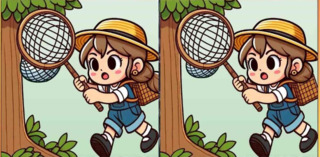 Спробуйте знайти три відмінності між двома майже ідентичними малюнками, де зображено дівчинку з сачком для метеликів. На перший погляд здається, що обидві картинки повністю однакові, та насправді в них приховано кілька дрібних змін.