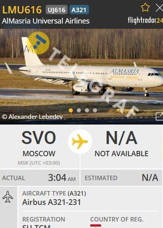 Другий борт А321 рейсу LMU616 вилетів з Москви о 3:04 ранку, проте дата та місце його приземлення засекречені. Відомо, що літак належить до компанії AlMasria Universal Airlines — єгипетська приватна компанія. Зауважимо, що за даними порталу борти цієї компанії здійснюють внутрішні рейси до Каїру.