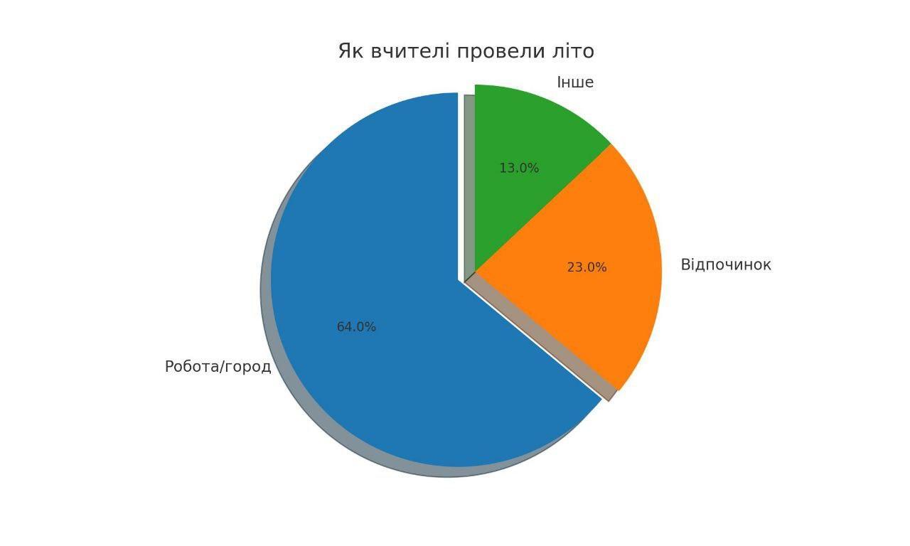 Опитування вчителів, де вони розповіли, як провели літо, показало, що більшість (64%) педагогів практично не мали відпустки, адже займалися роботою, ремонтами та городами.