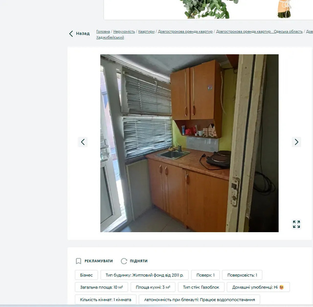 «Самостійна малогабаритна квартира площею 10 кв.м у закритому дворі, двоспальний диван, бойлер, пральна машина-автомат, холодильник, туалет/душ, електроплитка, вентилятор. Для одного чоловіка, що працює», – йдеться в оголошенні.