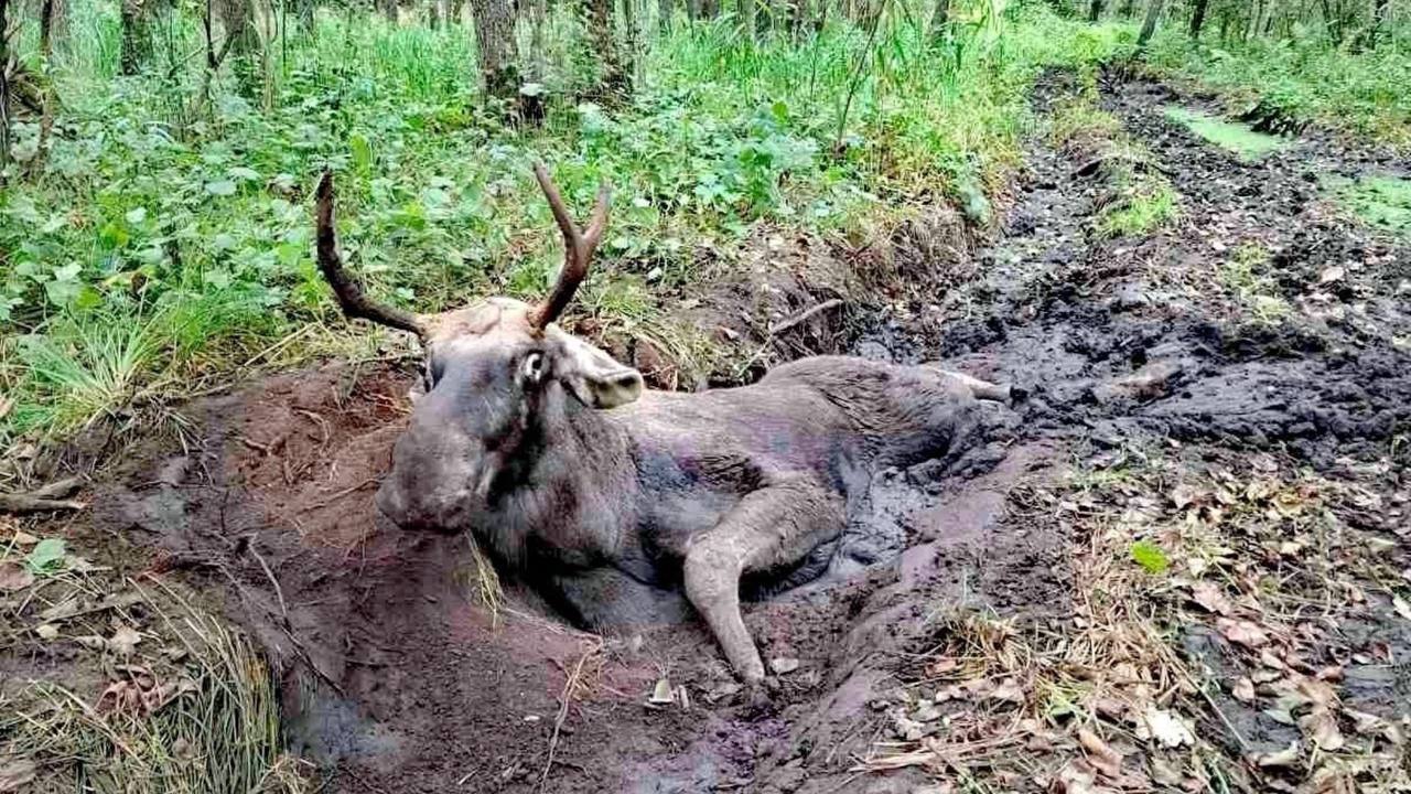 У Клевані під час збирання грибів люди натрапили на лося, який застряг у трясовині. За допомогою єгерів і лісівників тварину витягли.