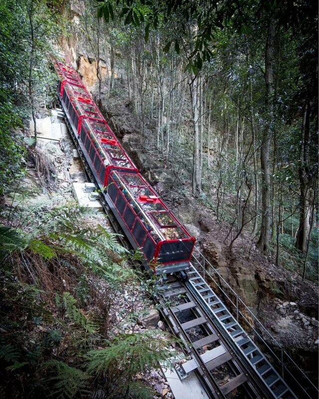 Ця залізниця розташована в Блакитних горах і вважається найкрутішою пасажирською у світі. Вона навіть потрапила до Книги рекордів Гіннеса. Потяг рухається під кутом 52 градуси, а для сміливців є режим спуску ще крутіший — до 64 градусів.