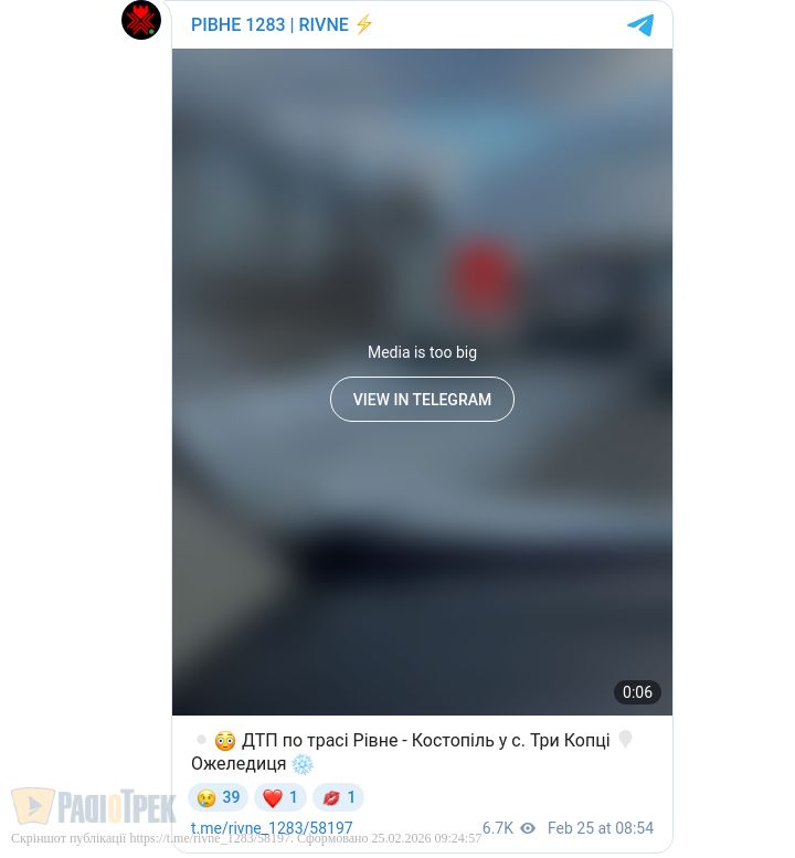 Низка серйозних ДТП сталася вже сьогодні зранку на дорогах Рівненщини. Зокрема, на трасі Рівне-Костопіль, неподалік села Три Копці, зіткнулися бус та мінівен. Є потерпілі.
