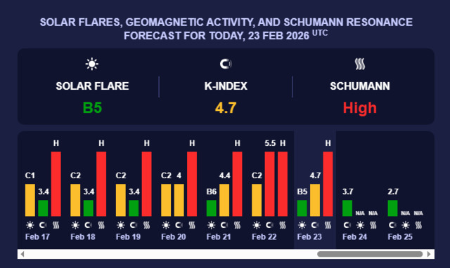 24 лютого очікується сонячна активність із К-індексом 3,7 — це слабкий (зелений) рівень.