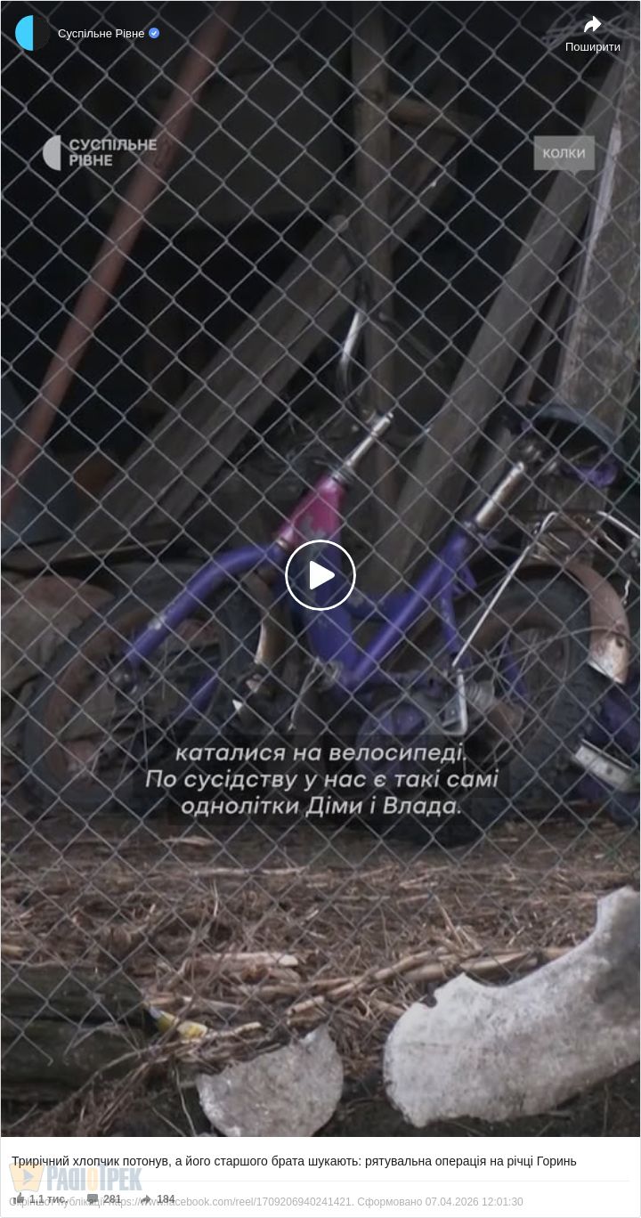 Третю добу на Рівненщині тривають пошуки 4-річного хлопчика. Нагадаємо, у неділю двоє братиків у селі Колки на Дубровиччині поїхали кататися на велосипедах і зникли.
