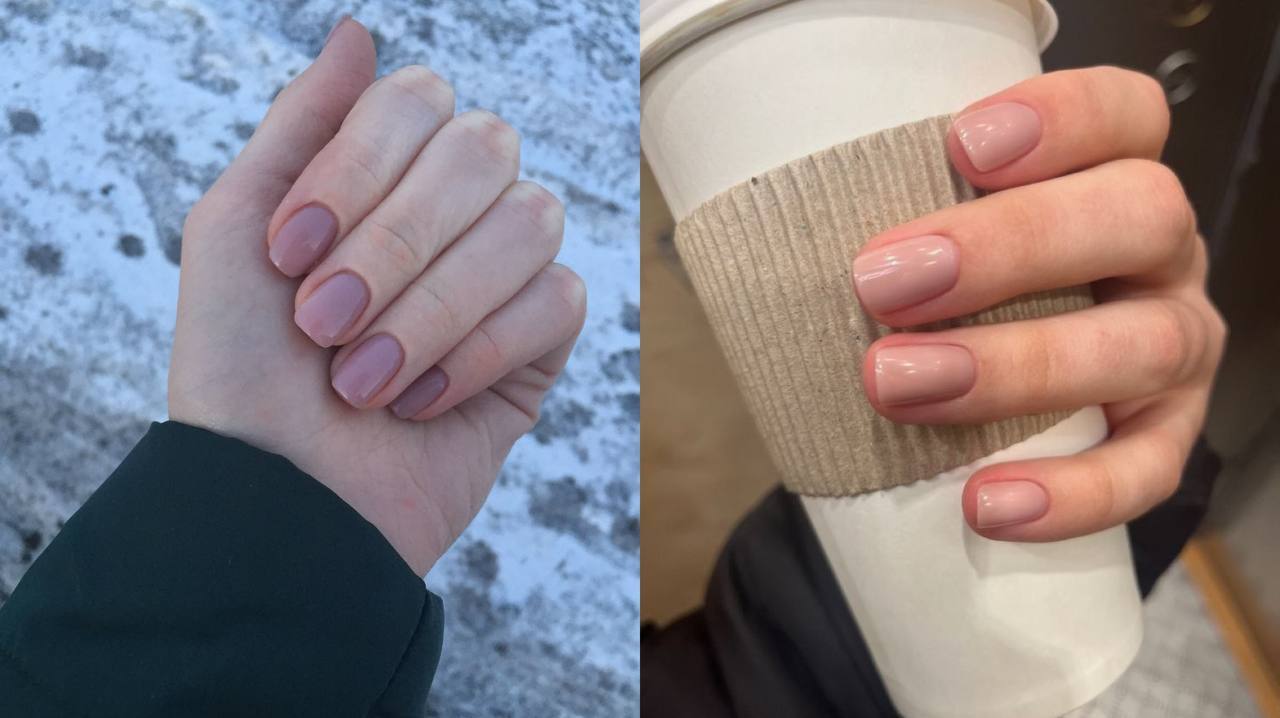 Ефект, як блиск для губ: ніжно-рожевий або тілесний відтінок і блиск. Підійде до будь-якого одягу, особливо для коротких і середніх нігтів.