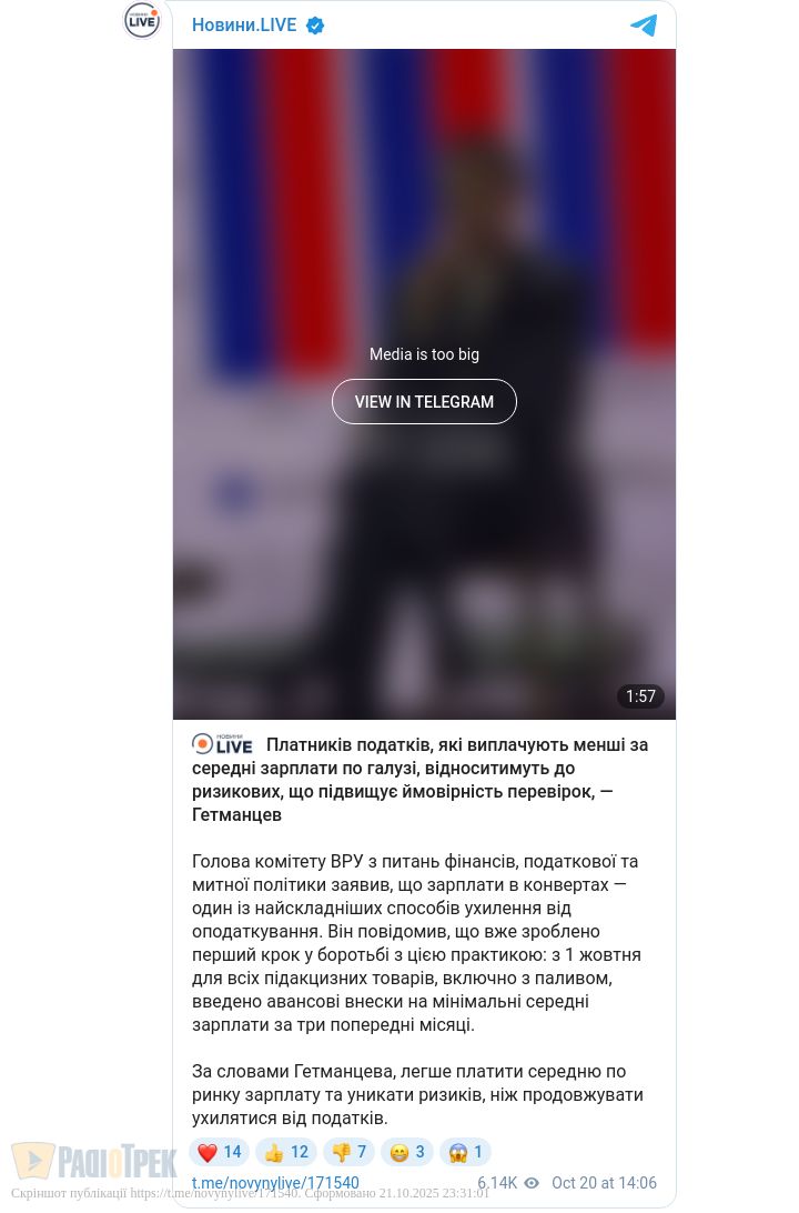 Зарплата в конверті — це один із найнебезпечніших способів ухилення від податків. Вона шкодить не лише державі, а й самим працівникам, — наголосив Гетманцев.