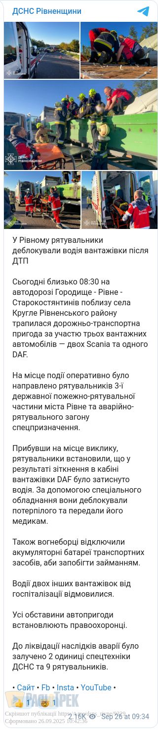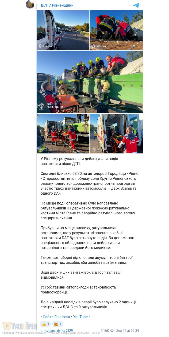 Масштабна ДТП сталася поблизу Рівного: Зіткнулися три вантажівки (ФОТО)