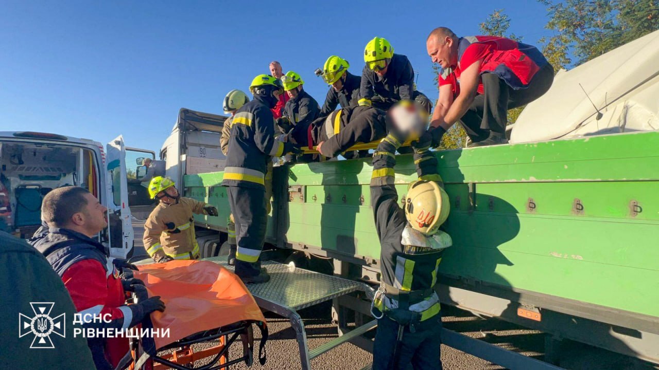 Водія однієї із фур затисло у кабіні. Його деблокували рятувальники та передали медикам.