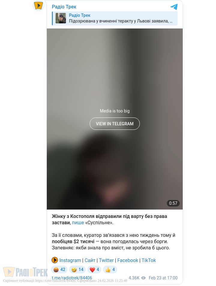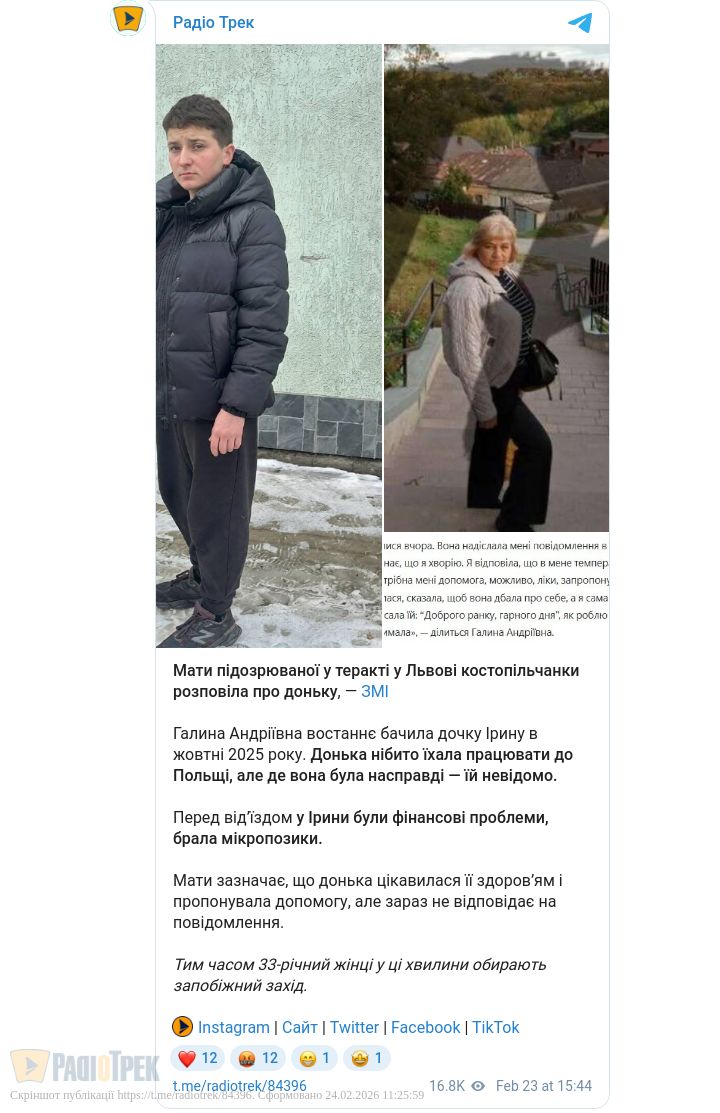 У Львові 23 лютого підозрюваній у вчиненні теракту обрали запобіжний захід. Слідство триває, правоохоронці встановлюють усі обставини справи, зокрема можливі зв’язки та мотиви.