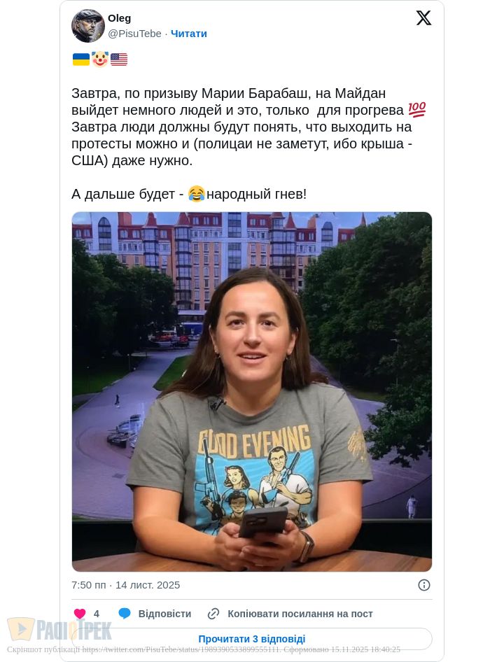 Цікаво, що активісткою, яка найбільш активно поширювали відео-звернення із закликом до нового Майдану була така собі Марія Барабаш.
