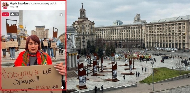Приблизно половина з них тримають в руках картонки з написами «Довіри більше немає, ви крадете у народу і ЗСУ», «Ні корупції в Україні та її зачинщикам» й іншими, а також з вимогою відновити розформовану роту ударних безпілотних комплексів Юрія Касьянова.