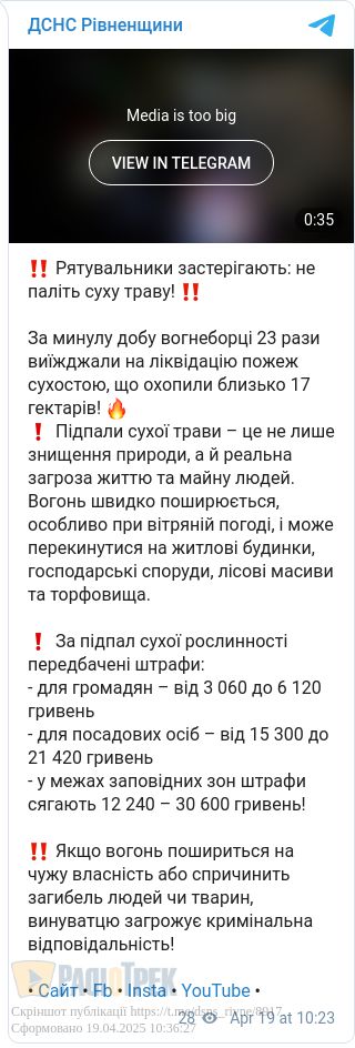 До слова, за підпал сухої рослинності в Україні передбачені штрафи: