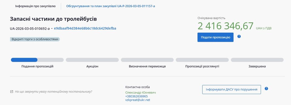 Деталі тендеру