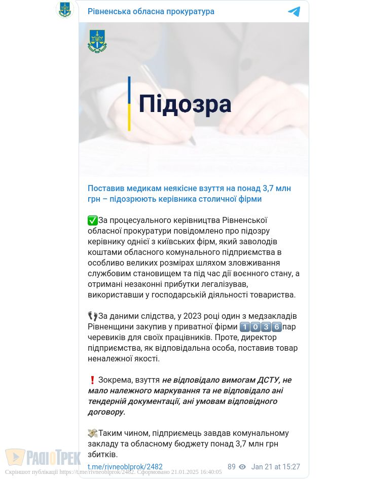 Неякісне взуття за майже 4 мільйони гривень продали медикам Рівненщини.