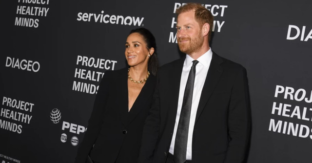 Меган виглядала елегантно в сукні без бретелей, а Гаррі був у синьому костюмі.