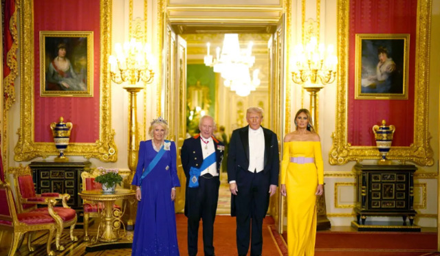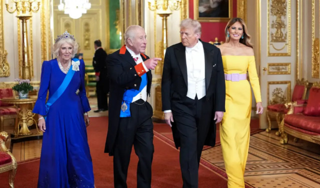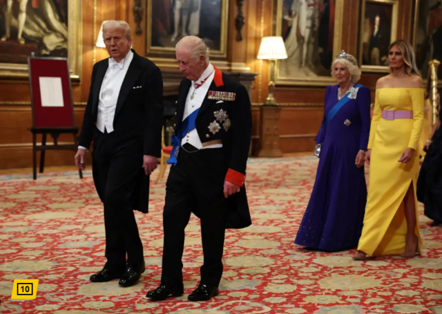 Серед гостей вечора були король Чарльз III, принц Вільям та Кейт Міддлтон, які супроводжували президентське подружжя під час офіційного прийому.