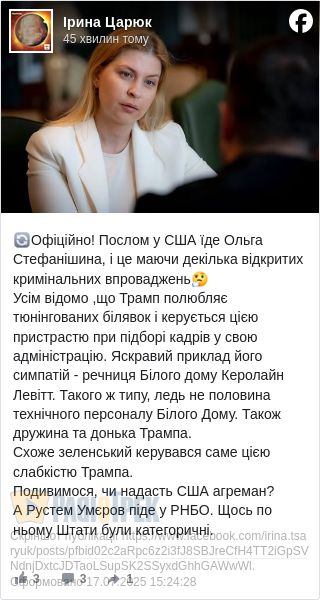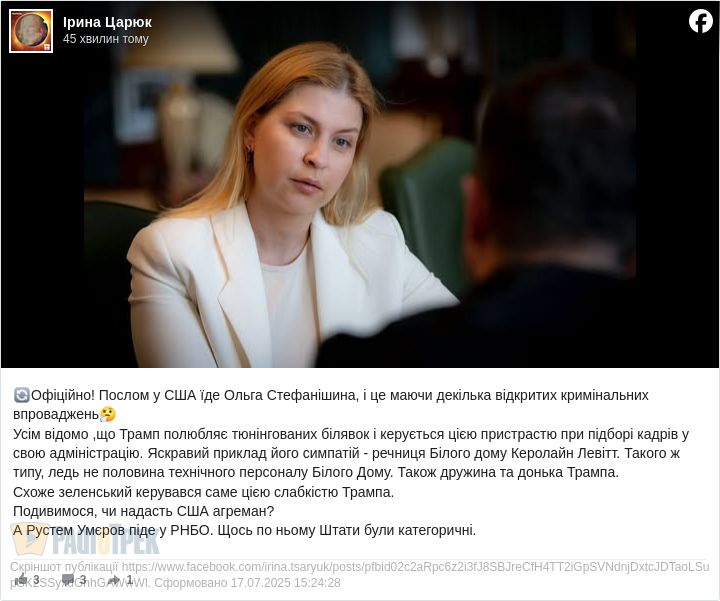 Послом у США їде Ольга Стефанішина, і це маючи декілька відкритих кримінальних впроваджень.