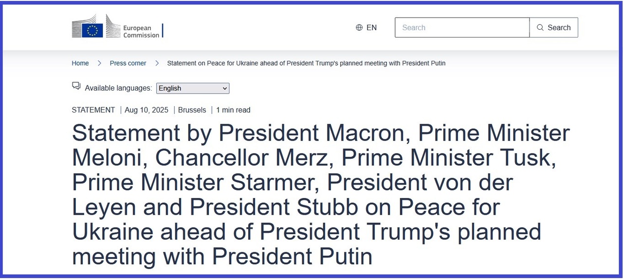 Спільна заява президента Франції Еммануеля Макрона, прем’єр-міністерки Італії Джорджі Мелоні, канцлера Німеччини Фрідріха Мерца, прем’єр-міністра Польщі Дональда Туска, прем’єр-міністра Великої Британії Кіра Стармера, президентки Єврокомісії Урсули фон дер Ляєн та президента Фінляндії Александера Стубба: