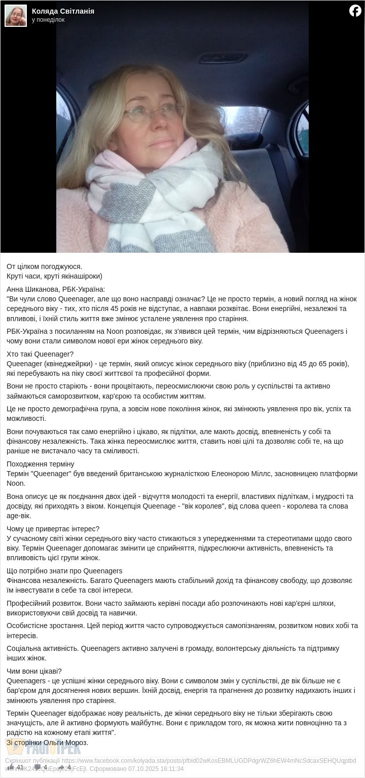 В ній розповідається про новий тренд – називати жінок, яким за 45 – «квінейджерками».